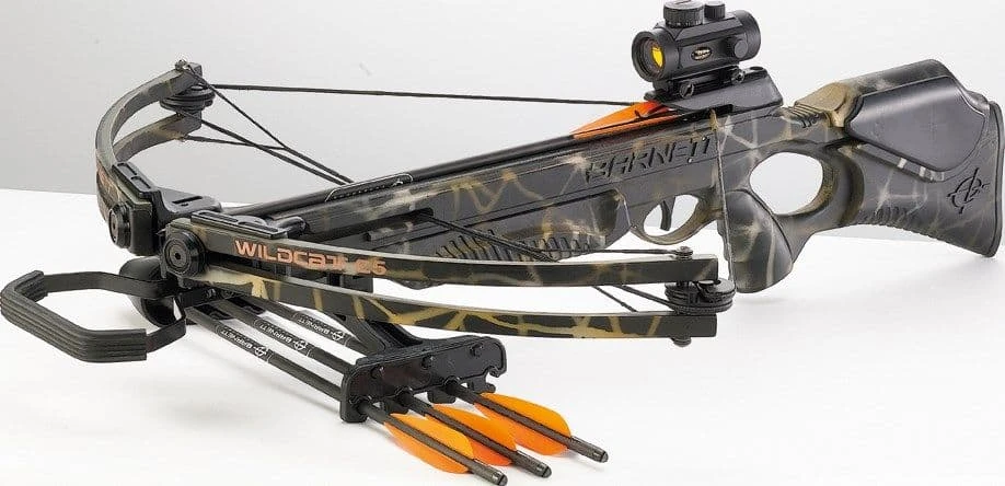 The Wildcat C5 is built on Barnett tradition.The best selling bow of all time is the foundation of this awesome compund crossbow. With spped, performance and comfort in mind, the WILDCAT C5 features a lightweight GAM composite stock, thumbhole grip, vented quad limbs and the ‘Veloci-Speed’ hight energy wheel assembly. It does not stop there; this bow has a revolutionary crank attachment built right into the stock. This allows for easy installation of the optional crank cocking device while maintaining a sleek, low profile look and feel. The WILDCAT C5 is available in a stealthy matted black finish (shown below) or in a camoflauge pattern.