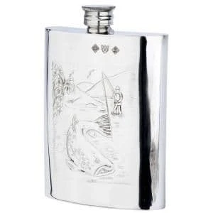 Pewter flask embossed with fisherman