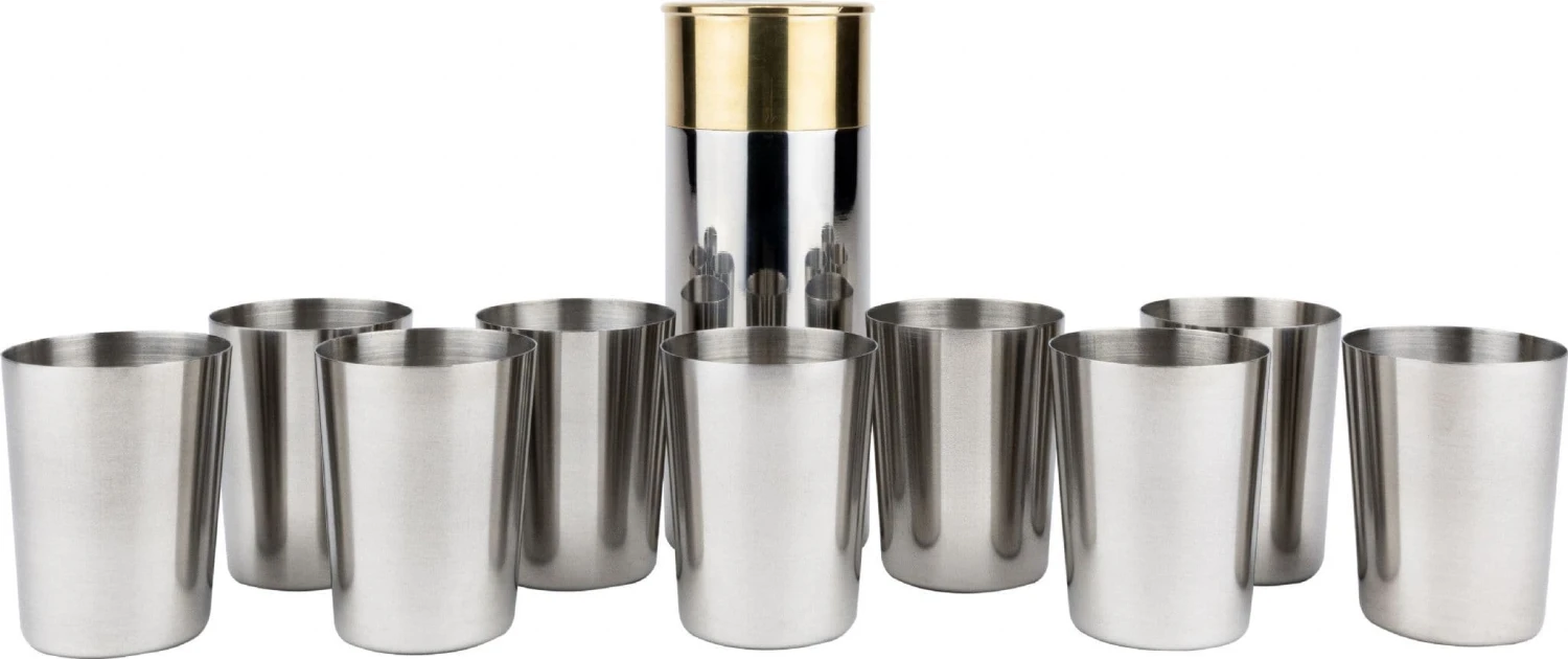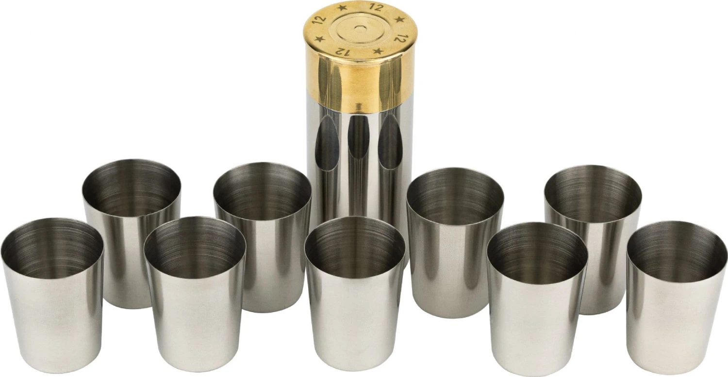 The stack of nine polished numbered cups in their cartridge shaped holder is the perfect set for the peg draw at the beginning of a shoot day. Share a drink and enjoy your favourite tipple with a group of friends or family. The classic design and polished finish of the Jack Pyke Cartridge Cup Set will give your shoot day or dinner party a country style feel and atmosphere. Build your collection of countryside memorabilia and add a corkscrew, wine stopper or a hip flask from the Jack Pyke silverware collection. The set comes in a presentation box adding a touch of luxury to your gift.