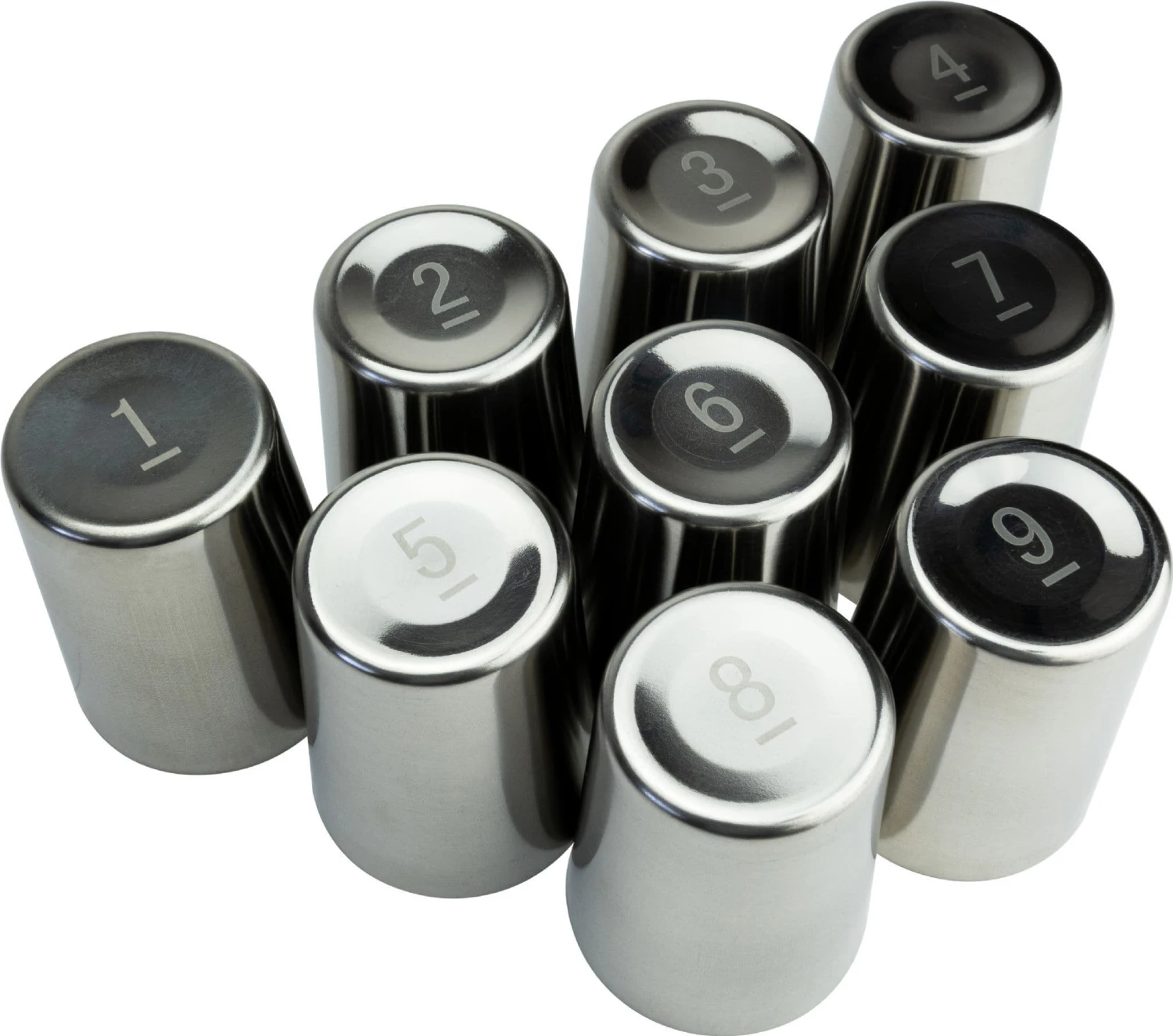 Nine numbered and stackable cups