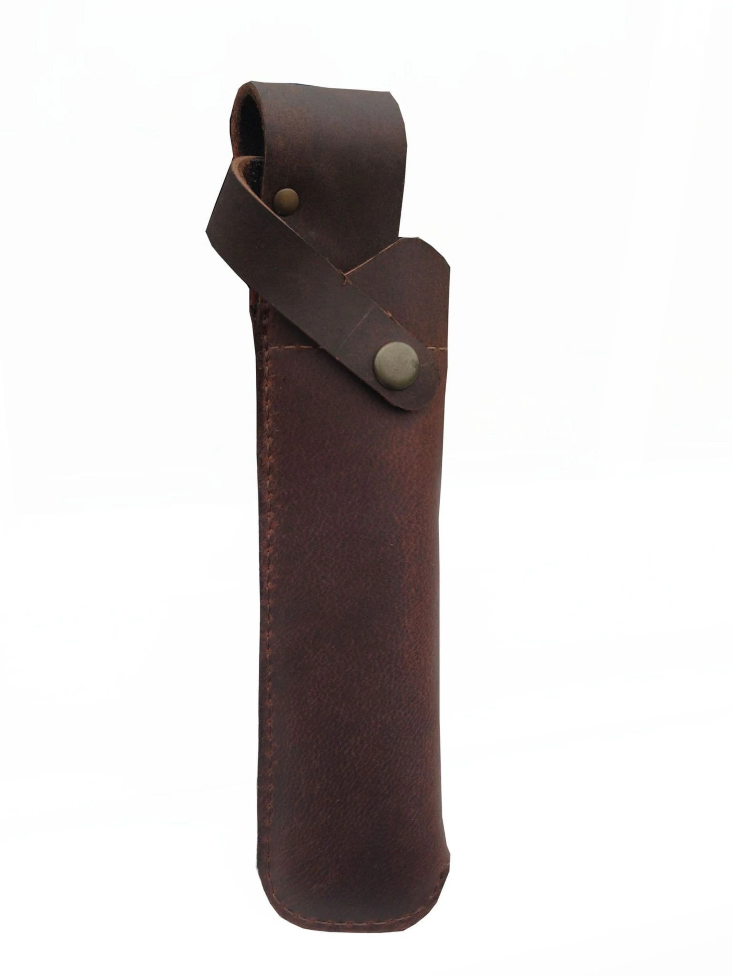 This bolt holder is manufactured by John Shooter England in distressed thick brown leather. It is constructed with inner lining made from thick fleece wool. The belt loop will fit most belts and it measures 9.5” high x 2” wide x 1” deep. Will fit most bolts.