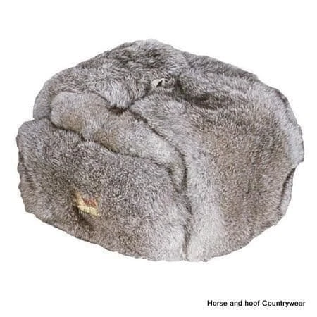 Acrylic fur outer with polyester lining and tied chin strap.