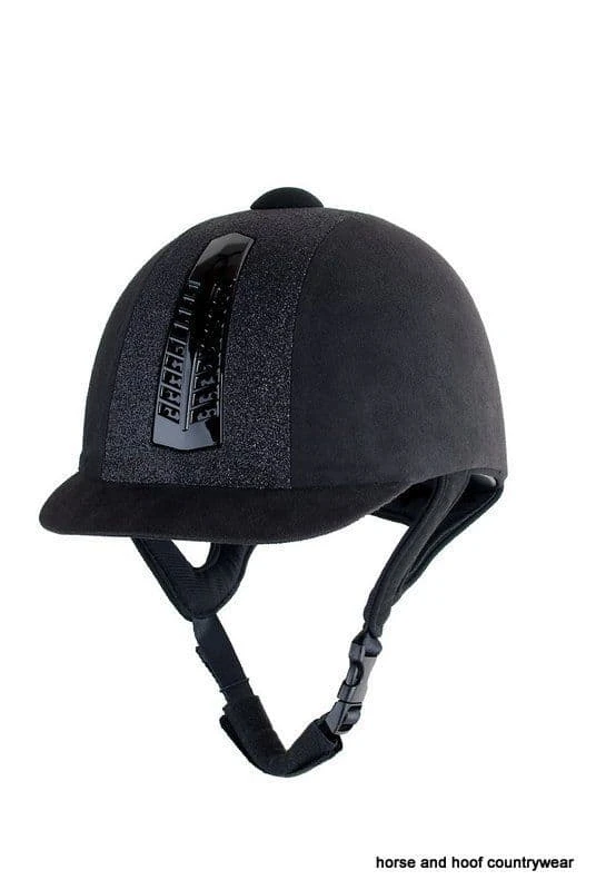 Ventilated Hat With (washable) Removable Liner Featuring Soft Suede Style Coolmax® Lined Harness And Glitter Panel Feature For Added Glamour . This Hat is Available In Sizes 6 3/8 – 7 1/4 in black . Safety Standard PAS 015 (which exceeds BSEN1384)