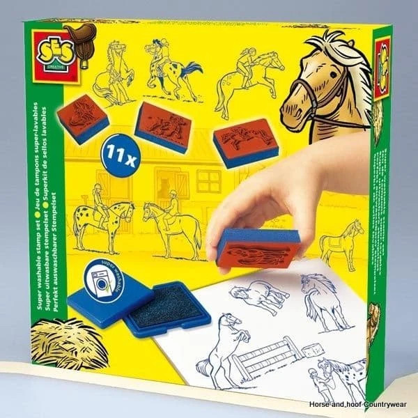 Does your child love horses? Then this stamp set is a perfect gift for them! Make beautiful horse pictures in minutes with this set of eleven stamps, each featuring a different horse or image. Well made and durable, these stamps can be used again and again. The stamps come with an ink pad that is both high quality and super washable meaning that play time does not always need to be messy. Contents: 11 x stamps, 1 x ink pad. Suitable for Age: 3+