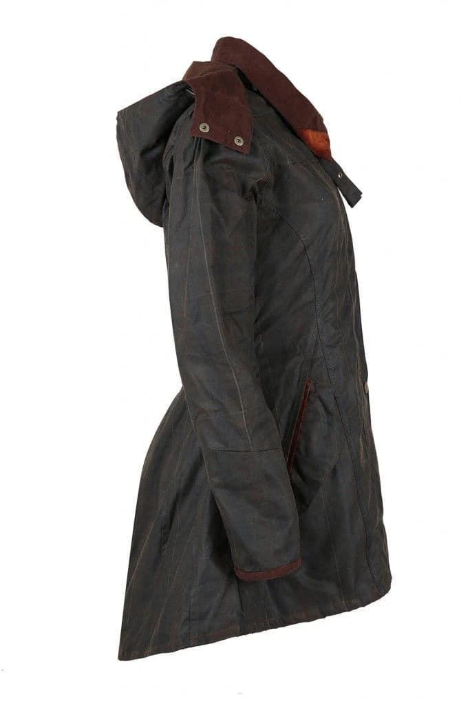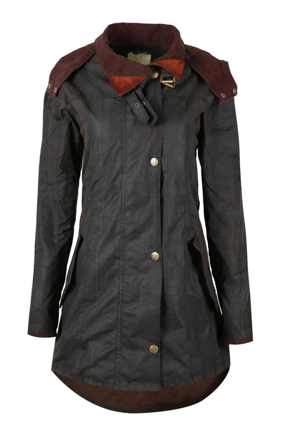 - Waxed cotton coat with detachable hood